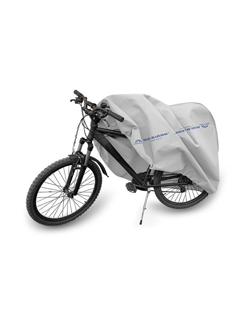 Park the bicycle in a place sheltered from wind securing it from tipping over. Place the cover with the printed side outwards on a clean and dry bike, then using the attached hook fasten the fixing loops of the cover under the bicycle frame. Do not use the cover when transporting the bicycle on exposed external vehicle racks (platforms).
