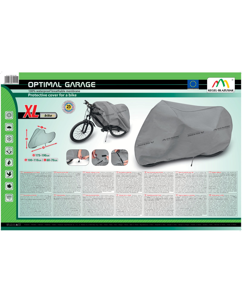 Park the bicycle in a place sheltered from wind securing it from tipping over. Place the cover with the printed side outwards on a clean and dry bike, then using the attached hook fasten the fixing loops of the cover under the bicycle frame. Do not use the cover when transporting the bicycle on exposed external vehicle racks (platforms).