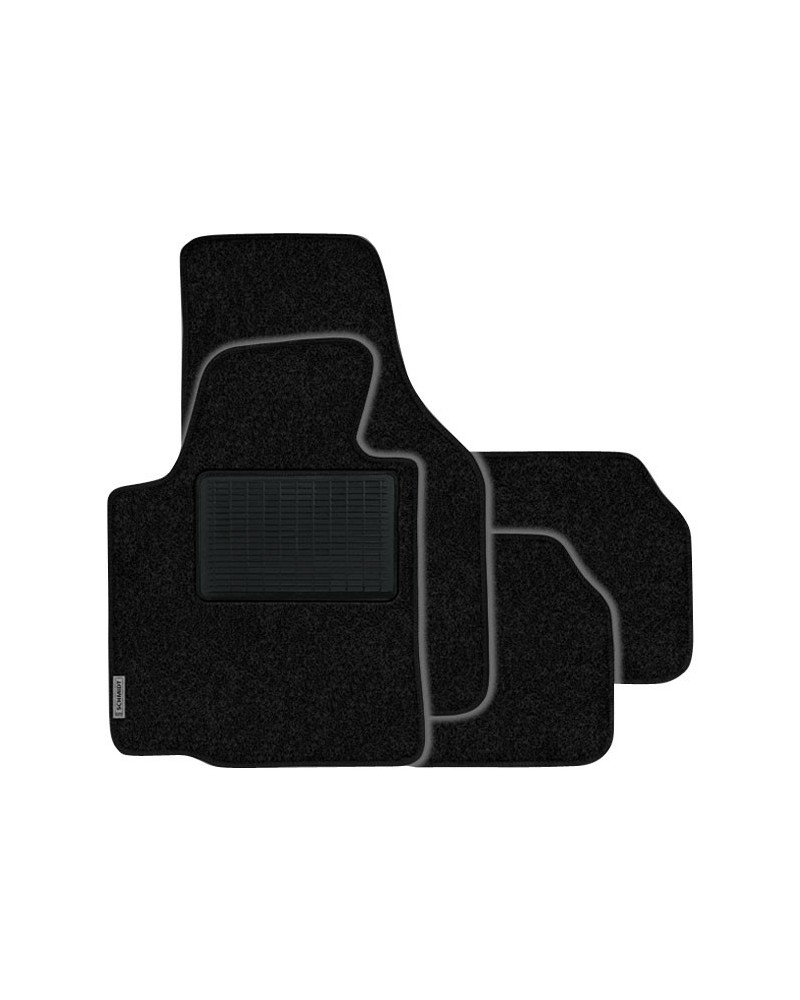 A set of practical THURINGEN car mats, professionally made from extremely durable and strong carpet with high abrasion resistance. The material has a unique pile structure that traps sand, dust and other debris falling from shoes. Liquids brought into the vehicle on shoes are absorbed into the material. The mats are extremely durable and strong, yet elegant and tasteful. They are very easy to clean and protect the car floor from having to be cleaned. The part of the mat under the driver's foot is reinforced with an additional layer of plastic, which traps larger debris. A layer of rubber laminate on the underside prevents the mat from slipping.