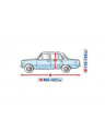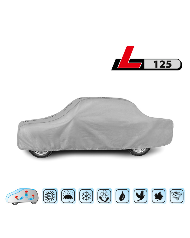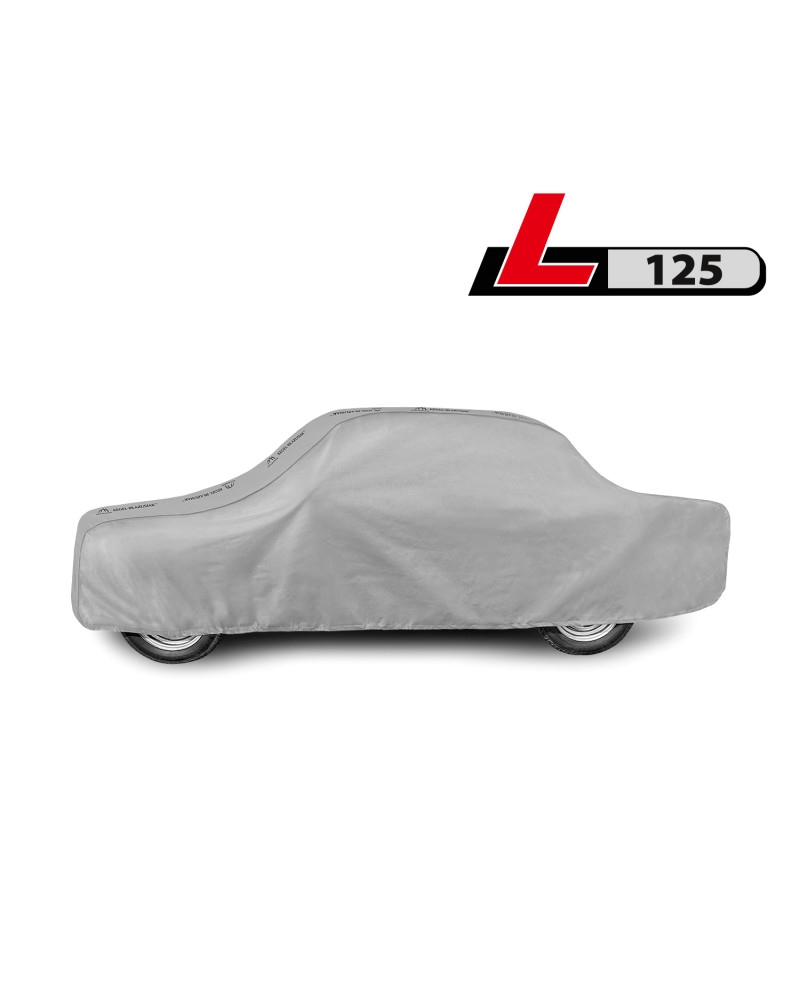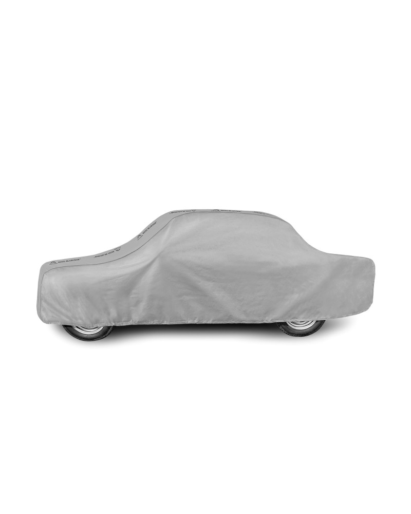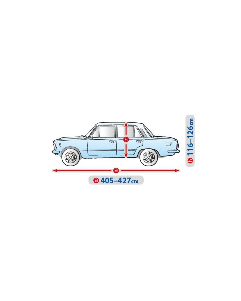 The textile material from which the car cover is made will fit both slightly smaller and larger cars of a similar shape and size not exceeding the circumference specified above.