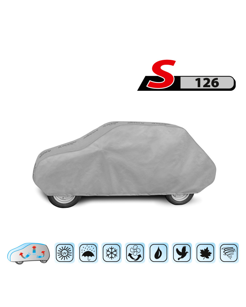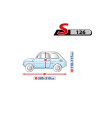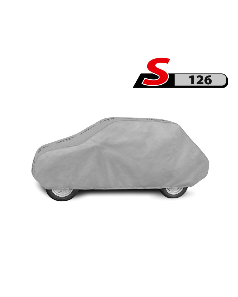 The textile material from which the car cover is made will fit both slightly smaller and larger cars of a similar shape and size not exceeding the circumference specified above.