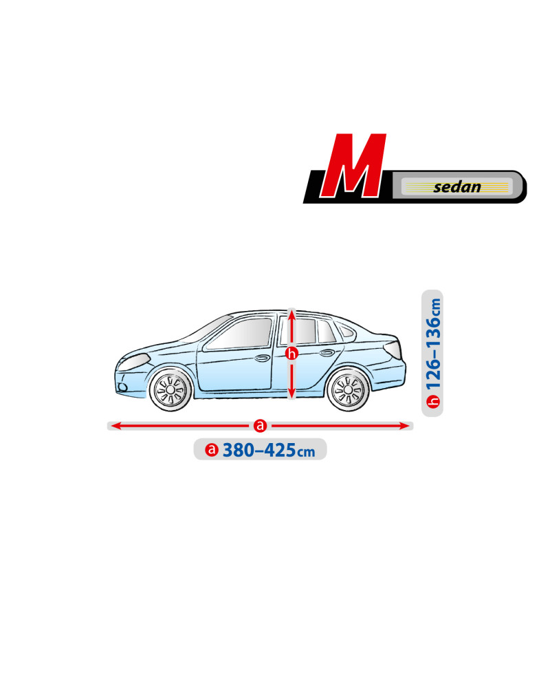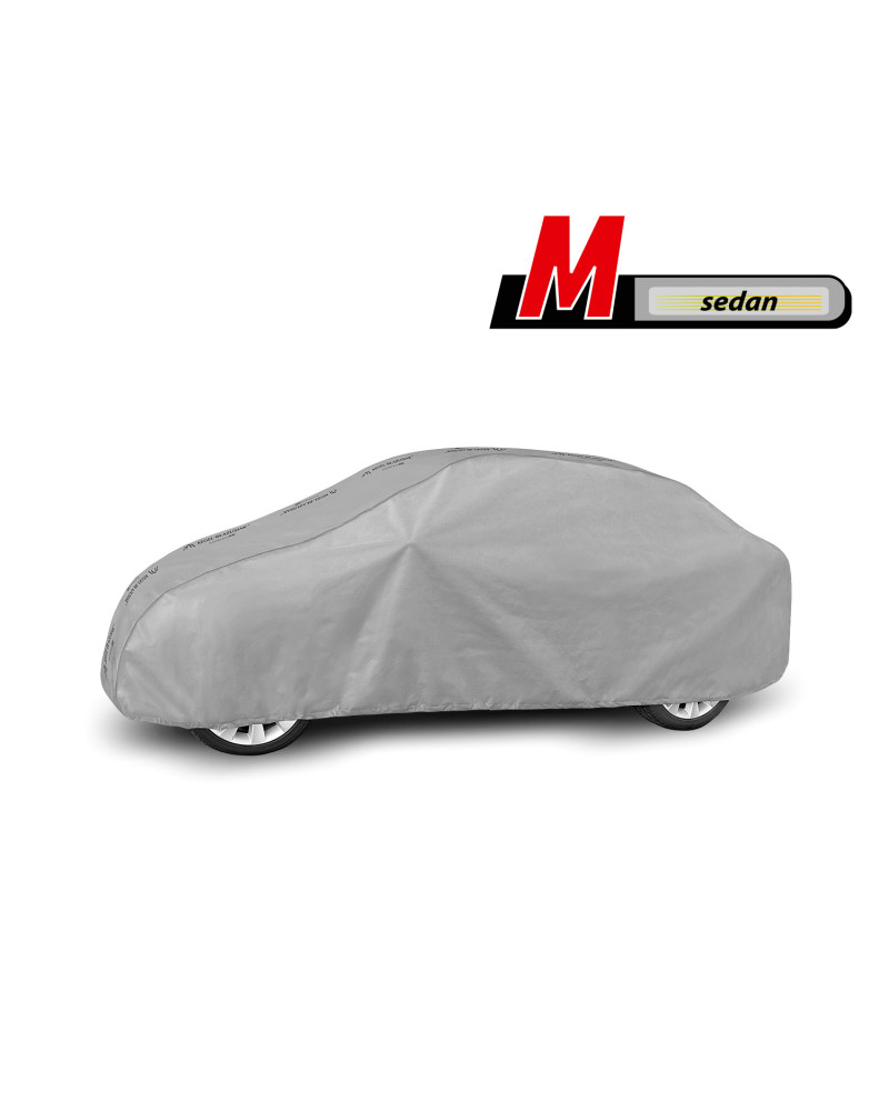The textile material from which the car cover is made will fit both slightly smaller and larger cars of a similar shape and size not exceeding the circumference specified above.