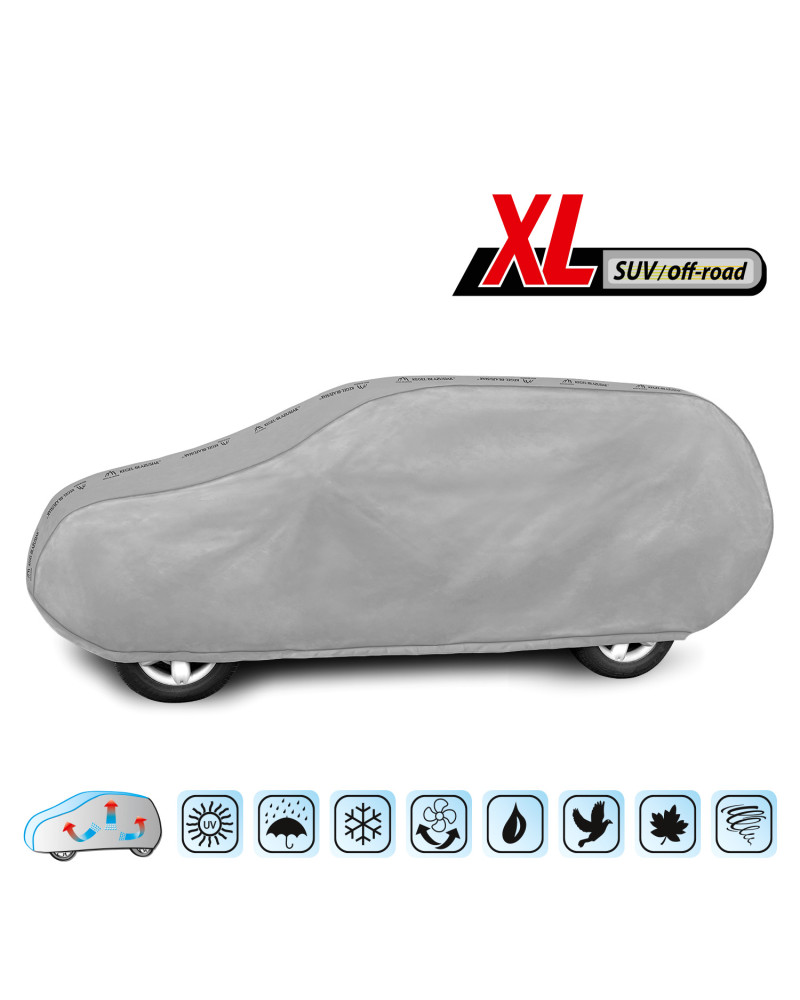 The textile material from which the car cover is made will fit both slightly smaller and larger cars of a similar shape and size not exceeding the circumference specified above.