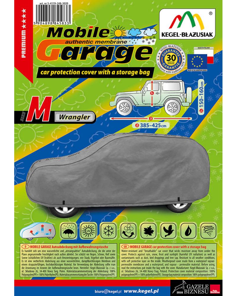 Good tarpaulin covers should not only protect the car from precipitation, pollution and sunlight but should also be safe. These are our Kegel-Błażusiak covers-tarpaulins. Our specialists carry out long-term tests of our covers-tarpaulins. We carry out tests for the effectiveness of protection of the vehicle by the cover-tarpaulin against weather conditions and water resistance, steam evacuation from under the cover, the safety of the cover for the vehicle paint coating and the effectiveness of fastening the cover on the vehicle in normal and extreme weather conditions. Our company Kegel-Błażusiak produces only those products that pass long-term tests.