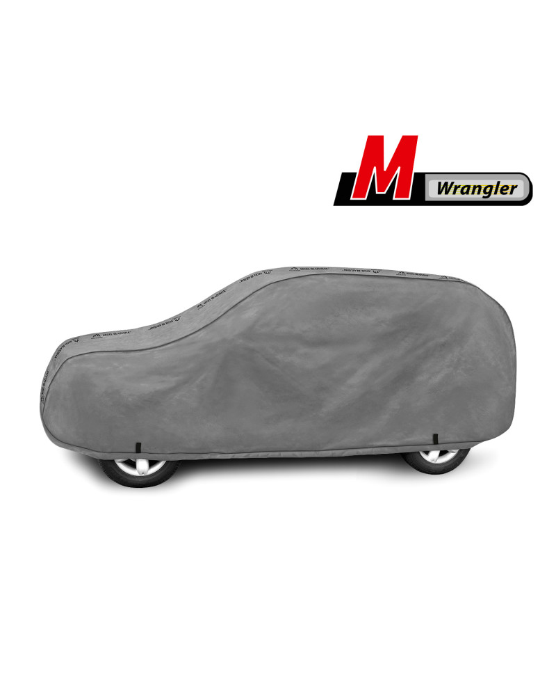 The top of the cover is waterproof and vapour-permeable. It does not get wet, while wicking moisture away from under the cover. Smooth SPUNBOND on the inside, does not scratch the vehicle.