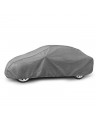 The unique properties of the multi-layer material ensure that the cover is waterproof, while allowing water vapor to escape from under the cover.  Any moisture that accumulates under the cover will quickly evaporate, preventing rust and mold from forming on the car. The cover is suitable for both temporary and long-term use. The cover can be hand washed at 40 degrees Celsius. The cover is gray, which is extremely practical and looks great. The center of the cover features the manufacturer's name and logo, as well as the name of the material from which it is made, guaranteeing the originality and high quality of the product. The variety of shapes and sizes means that you can choose a cover that fits your car perfectly.