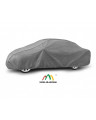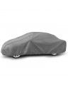 The unique properties of the multi-layer material ensure that the cover is waterproof, while allowing water vapor to escape from under the cover. Any moisture that accumulates under the cover will quickly evaporate, preventing rust and mold from forming on the car. The cover is suitable for both temporary and long-term use. The cover can be hand washed at 40 degrees Celsius. The cover is gray, which is extremely practical and looks great. The center of the cover features the manufacturer's name and logo, as well as the name of the material from which it is made, guaranteeing the originality and high quality of the product. The variety of shapes and sizes means that you can choose a cover that fits your car perfectly.