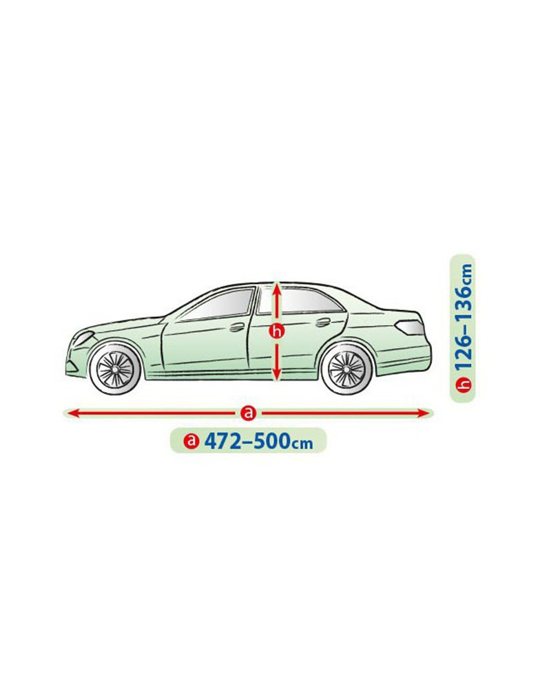 The textile material from which the tarpaulin is made will fit both slightly smaller and larger cars of a similar shape and size not exceeding the circumference specified above.