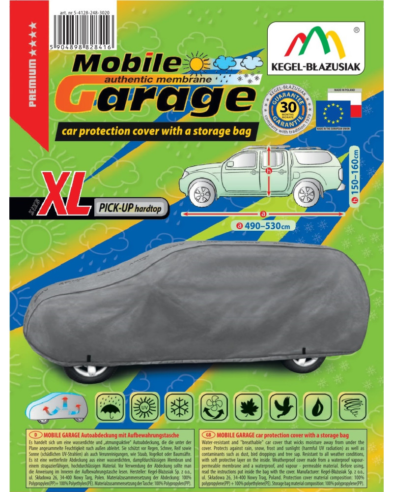 The high-quality Mobile Garage cover is a product tailored to the needs of drivers. The cover is made of a 4-layer material that is thick, strong, and durable. The cover protects the entire car from harmful environmental influences. The Mobile Garage cover provides adequate protection for your vehicle throughout the year. Its functionality can be appreciated in every season. In winter, it prevents snow, frost, and ice from settling on the car and is resistant to freezing; in autumn, it protects against rain, wind, leaves, and tree sap; and in summer and spring, it protects against UV rays, dust, and bird droppings.