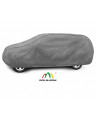 The unique properties of the multi-layer material ensure that the cover is waterproof, while allowing water vapor to escape from under the cover.  Any moisture that accumulates under the cover will quickly evaporate, preventing rust and mold from forming on the car. The cover is suitable for both temporary and long-term use. The cover can be hand washed at 40 degrees Celsius. The cover is gray, which is extremely practical and looks great. The center of the cover features the manufacturer's name and logo, as well as the name of the material from which it is made, guaranteeing the originality and high quality of the product. The variety of shapes and sizes means that you can choose a cover that fits your car perfectly.