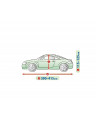 The unique properties of the multi-layer material ensure that the cover is waterproof, while allowing water vapor to escape from under the cover.  Any moisture that accumulates under the cover will quickly evaporate, preventing rust and mold from forming on the car. The cover is suitable for both temporary and long-term use. The cover can be hand washed at 40 degrees Celsius. The cover is gray, which is extremely practical and looks great. The center of the cover features the manufacturer's name and logo, as well as the name of the material from which it is made, guaranteeing the originality and high quality of the product. The variety of shapes and sizes means that you can choose a cover that fits your car perfectly.