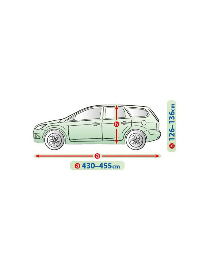 The textile material from which the tarpaulin is made will fit both slightly smaller and larger cars of a similar shape and size not exceeding the circumference specified above.