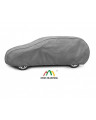 The unique properties of the multi-layer material ensure that the cover is waterproof, while allowing water vapor to escape from under the cover. Any moisture that accumulates under the cover will quickly evaporate, preventing rust and mold from forming on the car. The cover is suitable for both temporary and long-term use. The cover can be hand washed at 40 degrees Celsius. The cover is gray, which is extremely practical and looks great. The center of the cover features the manufacturer's name and logo, as well as the name of the material from which it is made, guaranteeing the originality and high quality of the product. The variety of shapes and sizes means that you can choose a cover that fits your car perfectly.