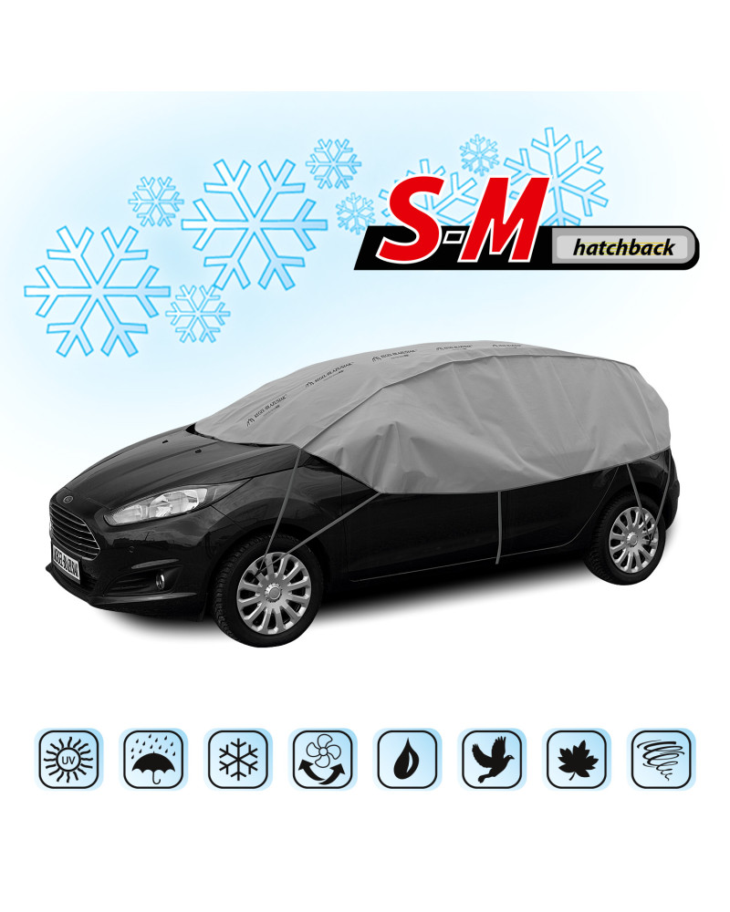 OPTIMIO protective half-covers will protect the roof, windows and mirrors of your parked car from frost and snow in winter. They cover the car door handles and locks, preventing them from freezing. They do not freeze to the car. They also protect against tree sap, bird droppings, dust deposits and even UV rays. Therefore, they can be used at any time of the year.