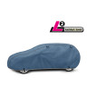 The unique properties of the multi-layer material ensure that the cover does not get wet, while allowing water vapour to escape from under the cover. Any moisture that accumulates under the cover will quickly evaporate, preventing rust and mould from forming on the car. The cover is suitable for both temporary and long-term use. The cover can be hand washed at 40 degrees. The cover is navy blue, which is extremely practical and looks great. The centre of the cover features the manufacturer's name and logo, as well as the name of the material from which it is made, guaranteeing the originality and high quality of the product. The variety of shapes and sizes means that you can choose a cover that fits your car perfectly.