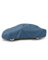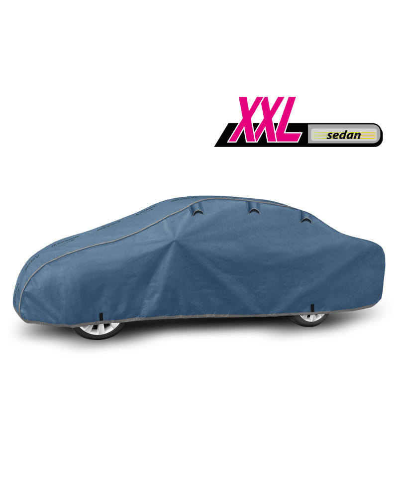 The unique properties of the multi-layer material ensure that the cover does not get wet, while allowing water vapour to escape from under the cover. Any moisture that accumulates under the cover will quickly evaporate, preventing rust and mould from forming on the car. The cover is suitable for both temporary and long-term use. The cover can be hand washed at 40 degrees. The cover is navy blue, which is extremely practical and looks great. The centre of the cover features the manufacturer's name and logo, as well as the name of the material from which it is made, guaranteeing the originality and high quality of the product. The variety of shapes and sizes means that you can choose a cover that fits your car perfectly.