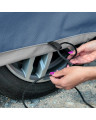 The bag in which the cover is packed is used to store the cover when not in use. The bag is vapour-permeable; however when folded it will not dry out and therefore it is recommended to keep the bag dry.