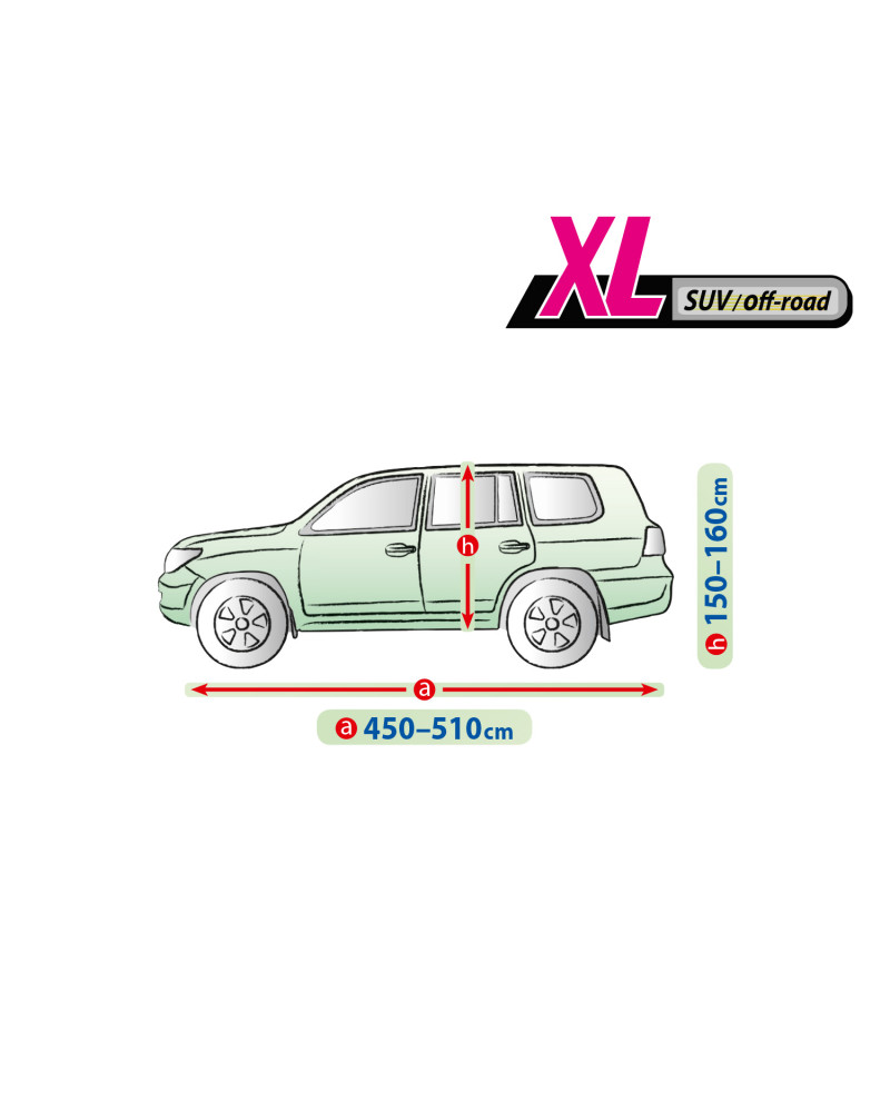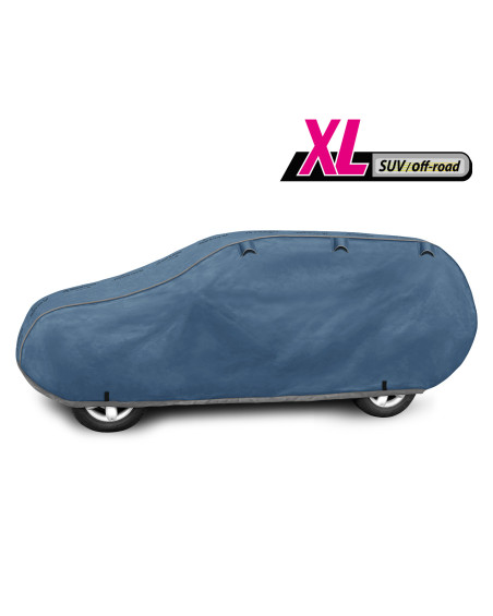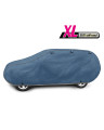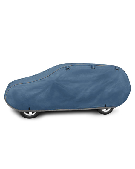 The unique properties of the multi-layer material ensure that the cover does not get wet, while allowing water vapour to escape from under the cover. Any moisture that accumulates under the cover will quickly evaporate, preventing rust and mould from forming on the car. The cover is suitable for both temporary and long-term use. The cover can be hand washed at 40 degrees. The cover is navy blue, which is extremely practical and looks great. The centre of the cover features the manufacturer's name and logo, as well as the name of the material from which it is made, guaranteeing the originality and high quality of the product. The variety of shapes and sizes means that you can choose a cover that fits your car perfectly.