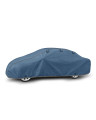 The unique properties of the multi-layer material ensure that the cover does not get wet, while allowing water vapour to escape from under the cover. Any moisture that accumulates under the cover will quickly evaporate, preventing rust and mould from forming on the car. The cover is suitable for both temporary and long-term use. The cover can be hand washed at 40 degrees. The cover is navy blue, which is extremely practical and looks great. The centre of the cover features the manufacturer's name and logo, as well as the name of the material from which it is made, guaranteeing the originality and high quality of the product. The variety of shapes and sizes means that you can choose a cover that fits your car perfectly.