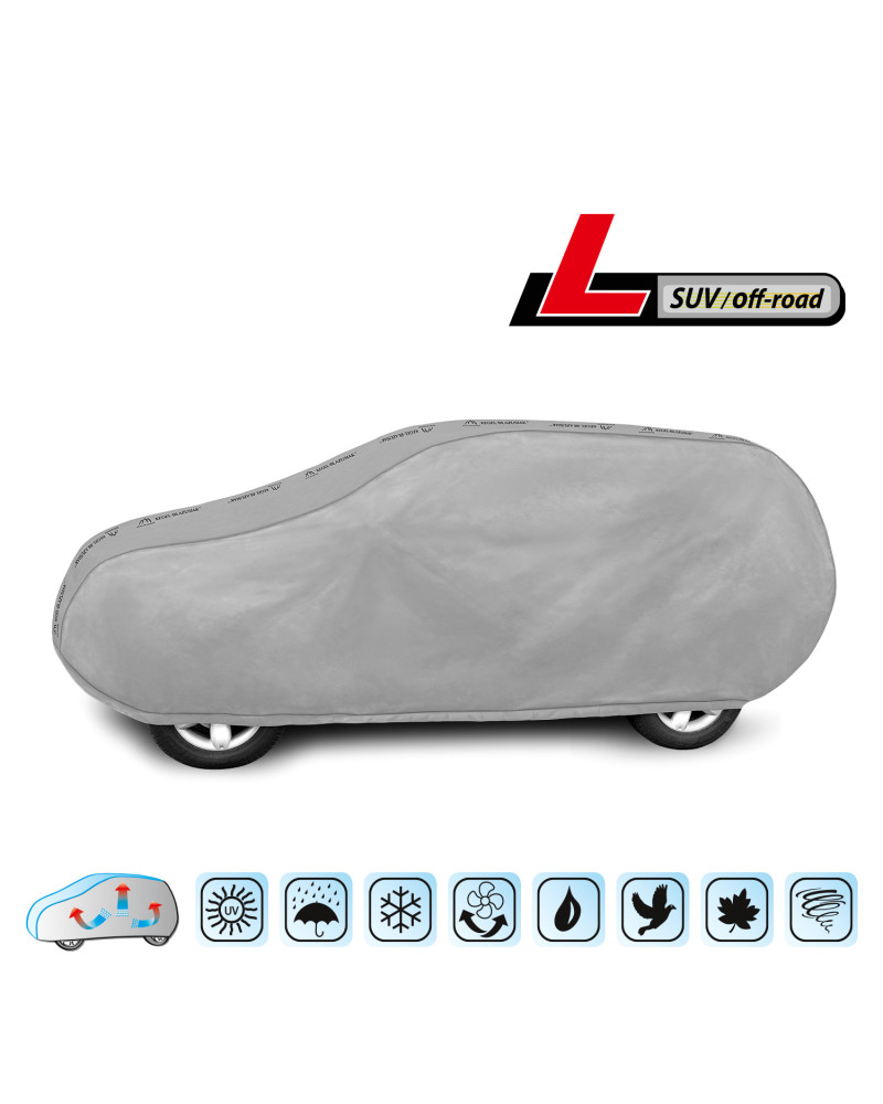The textile material from which the car cover is made will fit both slightly smaller and larger cars of a similar shape and size not exceeding the circumference specified above.
