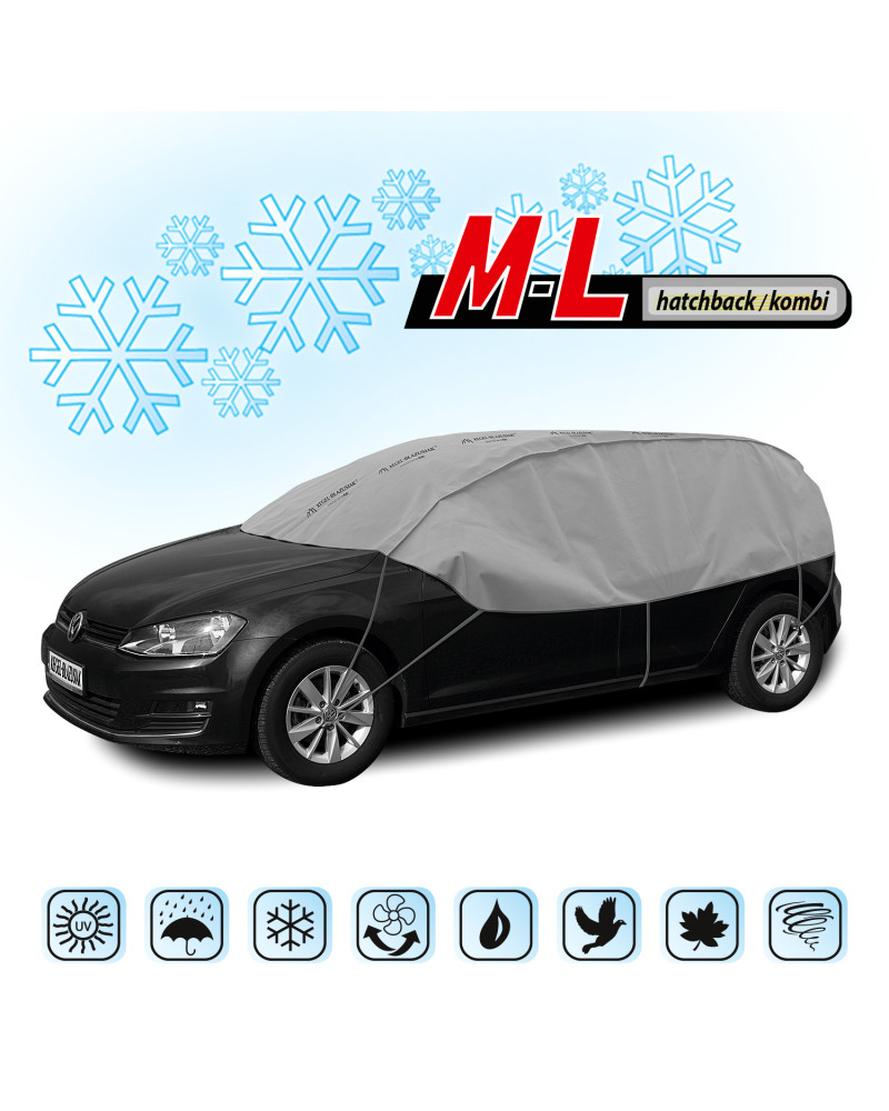 OPTIMIO protective half-covers will protect the roof, windows and mirrors of your parked car from frost and snow in winter. They cover the car door handles and locks, preventing them from freezing. They do not freeze to the car. They also protect against tree sap, bird droppings, dust deposits and even UV rays. Therefore, they can be used at any time of the year.