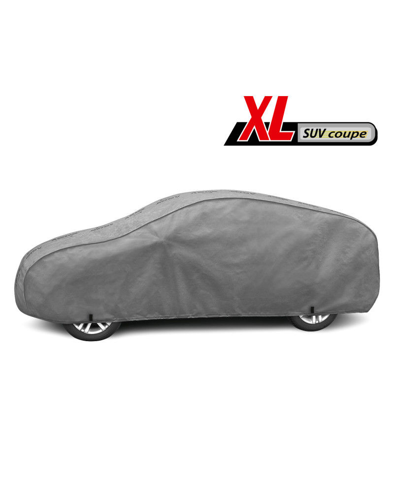 The unique properties of the multi-layer material ensure that the cover is waterproof, while allowing water vapor to escape from under the cover. Any moisture that accumulates under the cover will quickly evaporate, preventing rust and mold from forming on the car. The cover is suitable for both temporary and long-term use. The cover can be hand washed at 40 degrees Celsius. The cover is gray, which is extremely practical and looks great. The center of the cover features the manufacturer's name and logo, as well as the name of the material from which it is made, guaranteeing the originality and high quality of the product. The variety of shapes and sizes means that you can choose a cover that fits your car perfectly.