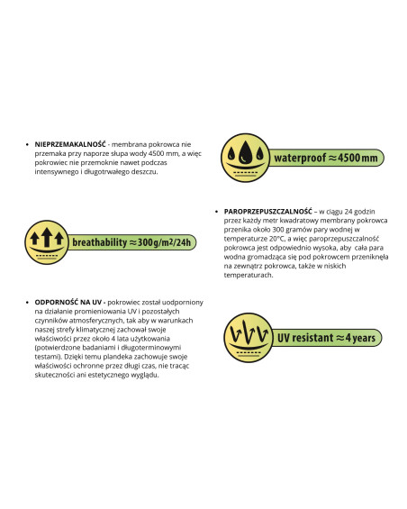 The cover is packed in a special, vapour-permeable bag used to store the cover when not in use. In addition to its main purpose, which is to protect the cover when not in use, the bag can have many practical applications in everyday life.