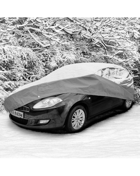 The unique properties of the multi-layer material ensure that the cover is waterproof, while allowing water vapor to escape from under the cover. Any moisture that accumulates under the cover will quickly evaporate, preventing rust and mold from forming on the car. The cover is suitable for both temporary and long-term use. The cover can be hand washed at 40 degrees Celsius. The cover is gray, which is extremely practical and looks great. The center of the cover features the manufacturer's name and logo, as well as the name of the material from which it is made, guaranteeing the originality and high quality of the product. The variety of shapes and sizes means that you can choose a cover that fits your car perfectly.