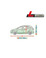 The textile material from which the tarpaulin is made will fit both slightly smaller and larger cars of a similar shape and size not exceeding the circumference specified above.
