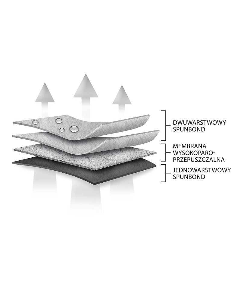 A vapour permeability rating of 329 means that 329 g of water vapour passed through one square metre of KB Textil 400 grey membrane in 24 hours at a temperature of approx. 20 degrees Celsius. Waterproofness with a score of 487 means that the KB Textil 400 grey membrane only became wet at a water column height of 487 cm (i.e. 4870 mm), which means that the membrane is completely waterproof even during heavy and prolonged rain.