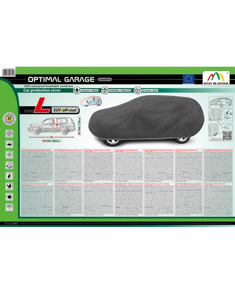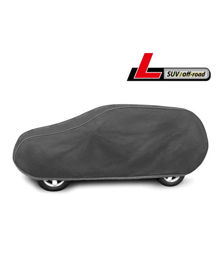 The unique properties of the multi-layer material ensure that the cover does not get wet, while allowing water vapour to escape from under the cover. Any moisture that accumulates under the cover will quickly evaporate, preventing rust and mould from forming on the car. The cover is suitable for both temporary and long-term use. The cover can be hand washed at 40 degrees. The cover is grey in colour, which is extremely practical and looks great. The centre of the cover features the manufacturer's name and logo, as well as the name of the material from which it is made, guaranteeing the originality and high quality of the product. The variety of shapes and sizes means that you can choose a cover that fits your car perfectly.