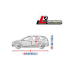 The unique properties of the multi-layer material ensure that the cover does not get wet, while allowing water vapour to escape from under the cover. Any moisture that accumulates under the cover will quickly evaporate, preventing rust and mould from forming on the car. The cover is suitable for both temporary and long-term use. The cover can be hand washed at 40 degrees. The cover is grey in colour, which is extremely practical and looks great. The centre of the cover features the manufacturer's name and logo, as well as the name of the material from which it is made, guaranteeing the originality and high quality of the product. The variety of shapes and sizes means that you can choose a cover that fits your car perfectly.