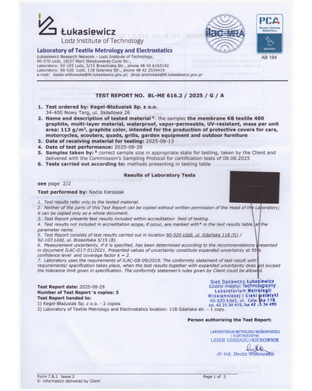 Good tarpaulin covers should not only protect the car from precipitation, pollution and sunlight but should also be safe. These are our Kegel-Błażusiak covers-tarpaulins. Our specialists carry out long-term tests of our covers-tarpaulins. We carry out tests for the effectiveness of protection of the vehicle by the cover-tarpaulin against weather conditions and water resistance, steam evacuation from under the cover, the safety of the cover for the vehicle paint coating and the effectiveness of fastening the cover on the vehicle in normal and extreme weather conditions. Our company Kegel-Błażusiak produces only those products that pass long-term tests.