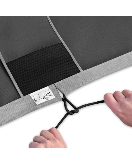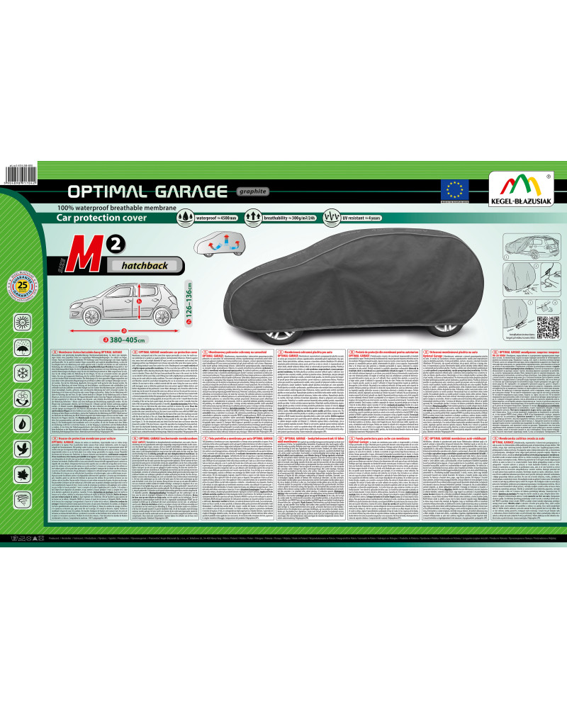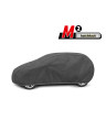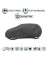 The unique properties of the multi-layer material ensure that the cover does not get wet, while allowing water vapour to escape from under the cover. Any moisture that accumulates under the cover will quickly evaporate, preventing rust and mould from forming on the car. The cover is suitable for both temporary and long-term use. The cover can be hand washed at 40 degrees. The cover is grey in colour, which is extremely practical and looks great. The centre of the cover features the manufacturer's name and logo, as well as the name of the material from which it is made, guaranteeing the originality and high quality of the product. The variety of shapes and sizes means that you can choose a cover that fits your car perfectly.