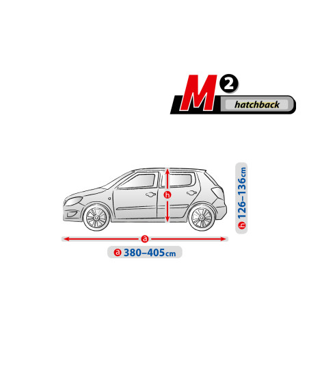 The textile material from which the tarpaulin is made will fit both slightly smaller and larger cars of a similar shape and size not exceeding the circumference specified above.