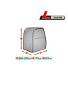 The unique properties of the multi-layer material ensure that the cover is waterproof, while allowing water vapor to escape from under the cover. Any moisture that accumulates under the cover will quickly evaporate, preventing rust and mold from forming on the car. The cover is suitable for both temporary and long-term use. The cover can be hand washed at 40 degrees Celsius. The cover is gray, which is extremely practical and looks great. The center of the cover features the manufacturer's name and logo, as well as the name of the material from which it is made, guaranteeing the originality and high quality of the product. The variety of shapes and sizes means that you can choose a cover that fits your car perfectly.
