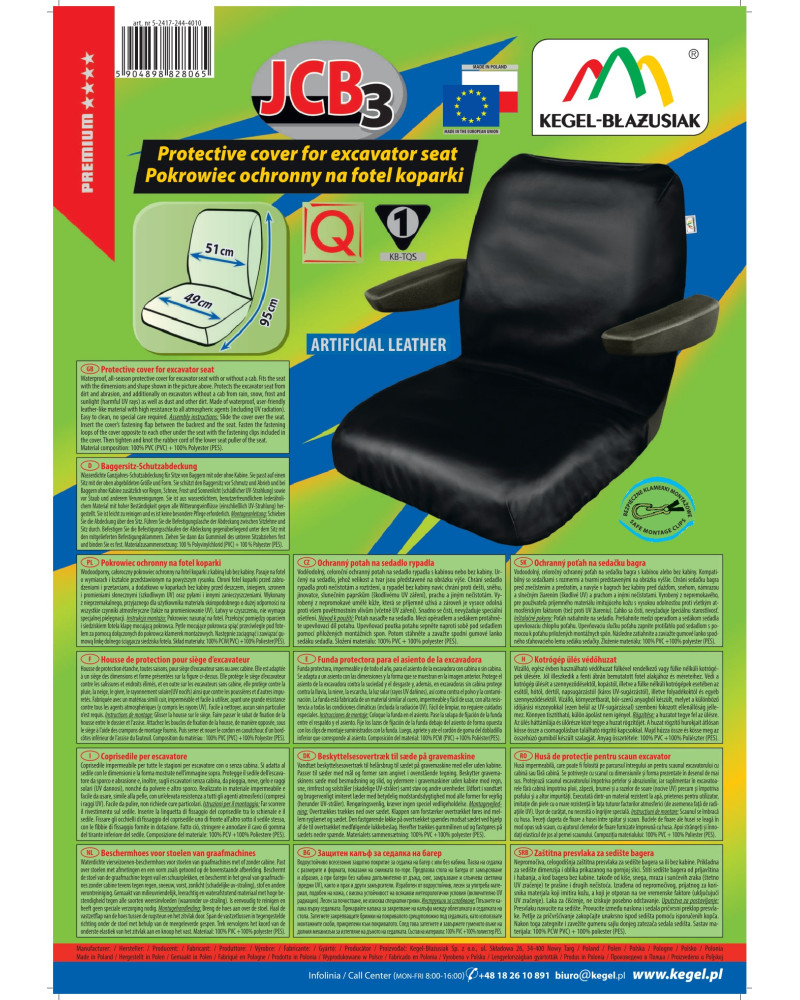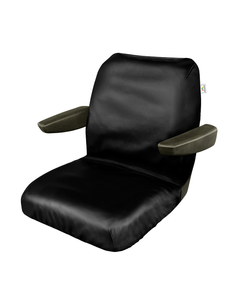 Waterproof, all-season protective cover for a seat of an excavator with or without a cab. Fits a seat of the size and shape shown in the picture above. Protects the seat of an excavator without a cab from rain, snow, frost, sunlight (harmful UV) and dirt. Made of waterproof, user-friendly leather-like material with high resistance to all atmospheric factors (including UV radiation). Easy to clean, no special care required.