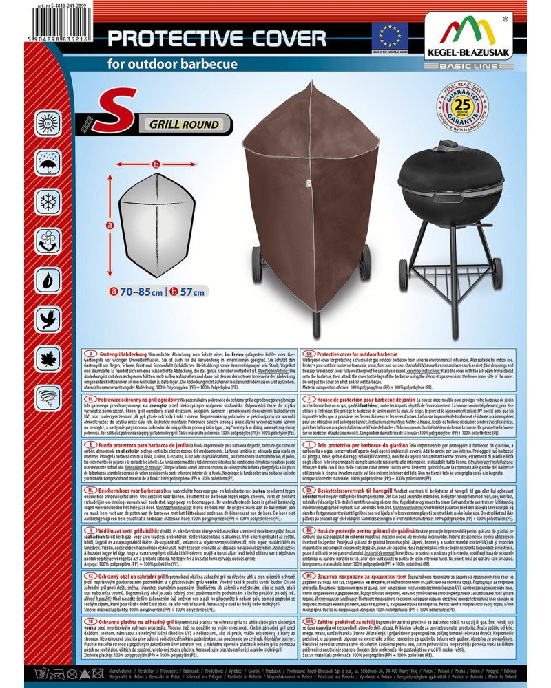 Assembly instructions: Place the cover with the ash seam trim side out onto the barbecue, then attach the cover to the legs of the barbecue using the Velcro straps sewn into the lower inner side of the cover. Do not put the cover on a hot and/or wet barbecue.