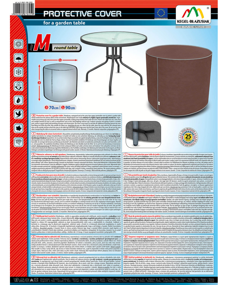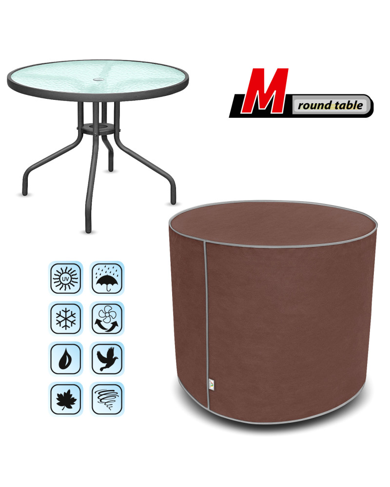 Year-round cover to protect a garden table stored outside from the adverse effects of the environment. Due to its special design, water runs off the cover when it rains without penetrating under the cover. Protects the table from rain, snow, frost and sunlight (harmful UV rays) as well as contaminants such as dust, bird droppings and tree sap. It reduces corrosion and ageing of plastic or wooden parts, protects against fading and tarnishing of lacquer and chrome parts. The cover is fully resistant to all weather conditions. Easy to put on and take off. Additional fastenings prevent the cover from being torn off by the wind. Also suitable for indoor use.