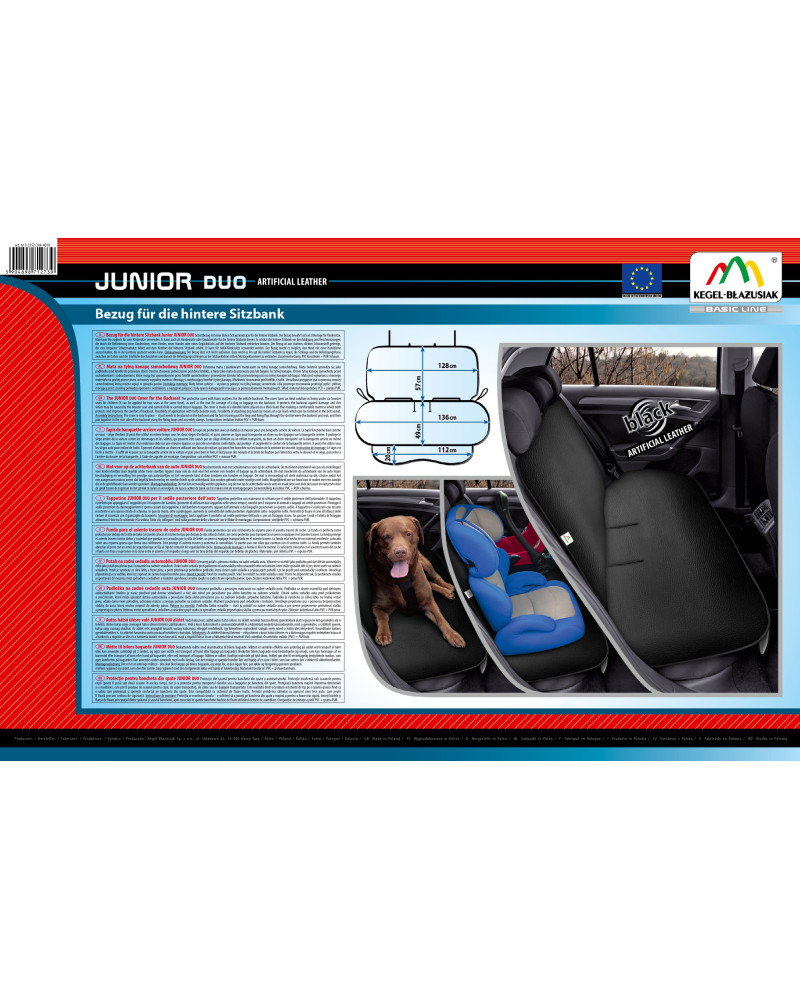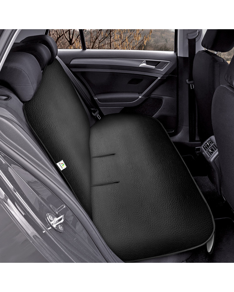 Protective mat with foam mattress for the rear seat of a car. The mat is perfect as a pad for child car seats (can be used under two seats at the same time), as well as a mat for transporting a dog or luggage on the rear seat. It protects the rear seat of the car from damage and dirt that may be caused by a car seat and a child or dog travelling on the rear seat or luggage. The mat is made of strong material on thick foam, creating a comfortable mattress that protects and increases the comfort of the rear seat. Can be used under Isofix car seats. Allows you to secure your dog with a car leash that can be attached to the seat belt sockets.