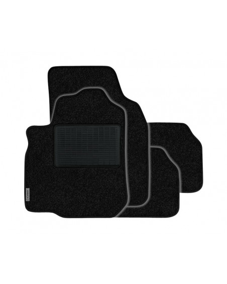 Komplet praktycznych dywaników samochodowych THURINGEN profesjonalnie wykonanych z niezwykle trwałej i mocnej wykładziny dywanowej, o dużej odporności na przecieranie. Materiał wykonania, posiada unikalną strukturę włosa, która zatrzymuje opadający z butów piasek, pył i inne zanieczyszczenia. Substancje płynne wnoszone na butach do pojazdu wchłaniają się do materiału. Dywaniki są niezwykle trwałe i mocne, a zarazem eleganckie i gustowne. Bardzo łatwo je wyczyścić, oraz uchronić się przed koniecznością czyszczenia podłogi samochodu. Fragment dywanika pod stopą kierowcy wzmocniony jest dodatkową warstwą tworzywa sztucznego, która zatrzymuje większe zanieczyszczenia. Warstwa gumowego laminatu od spodu zapobiega przesuwaniu się dywanika.