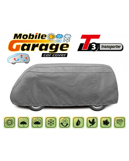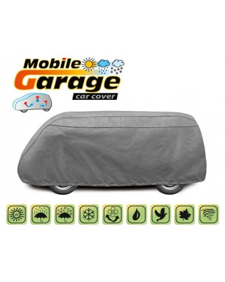 Wysokogatunkowy pokrowiec Mobile Garage na kamper van to produkt dopasowany do potrzeb kierowców. Pokrowiec wykonany jest z aż 4-warstwowego materiału, który jest gruby, mocny i wytrzymały. Pokrowiec chroni cały kamper przed szkodliwym wpływem środowiska. Pokrowiec Mobile Garage to odpowiednia ochrona kampera przez cały rok. Jego funkcjonalność docenić można w każdej porze roku. W sezonie zimowym zapobiega osadzaniu się śniegu, szronu i lodu, a także jest odporny na przymarzanie; na jesieni chroni przed deszczem, wiatrem, liśćmi, sokami z drzew; zaś w porach letnich i wiosennych ochrania przed promieniami UV, pyłem i ptasimi odchodami.