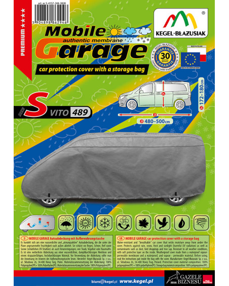 Wysokogatunkowy pokrowiec Mobile Garage na kamper van to produkt dopasowany do potrzeb kierowców. Pokrowiec wykonany jest z aż 4-warstwowego materiału, który jest gruby, mocny i wytrzymały. Pokrowiec chroni cały kamper przed szkodliwym wpływem środowiska. Pokrowiec Mobile Garage to odpowiednia ochrona kampera przez cały rok. Jego funkcjonalność docenić można w każdej porze roku. W sezonie zimowym zapobiega osadzaniu się śniegu, szronu i lodu, a także jest odporny na przymarzanie; na jesieni chroni przed deszczem, wiatrem, liśćmi, sokami z drzew; zaś w porach letnich i wiosennych ochrania przed promieniami UV, pyłem i ptasimi odchodami.