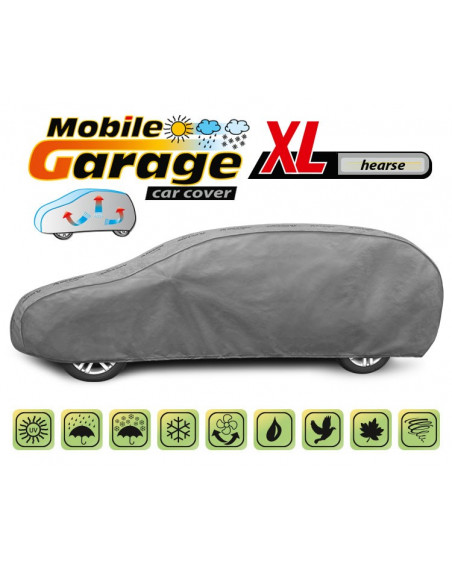Wysokogatunkowy pokrowiec Mobile Garage to produkt dopasowany do potrzeb kierowców. Pokrowiec wykonany jest z aż 4-warstwowego materiału, który jest gruby, mocny i wytrzymały. Pokrowiec chroni cały samochód przed szkodliwym wpływem środowiska. Pokrowiec Mobile Garage to odpowiednia ochrona pojazdu przez cały rok. Jego funkcjonalność docenić można w każdej porze roku. W sezonie zimowym zapobiega osadzaniu się śniegu, szronu i lodu, a także jest odporny na przymarzanie; na jesieni chroni przed deszczem, wiatrem, liśćmi, sokami z drzew; zaś w porach letnich i wiosennych ochrania przed promieniami UV, pyłem i ptasimi odchodami.