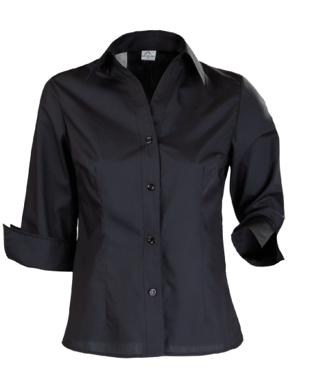 Buzka damska z firmowej kolekcji Food & Gastro & Clean o eleganckim, podkreślającym sylwetkę kroju i rękawach 3/4, z mankietami ułatwiającymi podwijanie rękawów jest idealna dla personelu sprzedającego, kelnerek, barmanek etc., sprawdzi się także jako koszula/bluzka wizytowa. Bluzkę wykonano z wysokiej jakości tkaniny poliestrowo-bawełnianej, która zapewnia trwałość odzieży, a także zachowuje kolory nawet po wielokrotnym praniu.