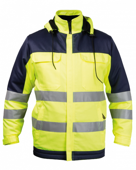 Kurtka Ciepłochronna o intensywnej widzialności z firmowej kolekcji Protective gwarantuję bezpieczeństwo i ochronę użytkownika w każdych warunkach i miejscach pracy, gdzie musi on być prawidłowo i wyraźnie widoczny dla użytkowników pojazdów i innych urządzeń mechanicznych, zarówno w świetle dziennym, jak i nocnym (reflektory). Dodatkową ochronę zapewniają naszyte taśmy odblaskowe o szerokości 5 cm.