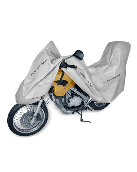 Membranowy, nieprzemakalny i jednocześnie paroprzepuszczalny pokrowiec do ochrony motocykla spalinowego lub elektrycznego przed niekorzystnym wpływem środowiska. Odporny na warunki atmosferyczne pokrowiec wykonany w całości z membrany wysokoparoprzepuszczalnej. Nieprzemakalny nawet podczas intensywnego deszczu i jednocześnie paroprzepuszczalny, odprowadzający na zewnątrz wilgoć spod pokrowca. Chroni przed deszczem, śniegiem, szronem i promieniami słonecznymi (szkodliwym UV) oraz zanieczyszczeniami jak pył, ptasie odchody i soki z drzew. Ogranicza korozję i starzenie się elementów z tworzyw sztucznych, chroni przed blaknięciem i matowieniem lakieru oraz elementów chromowanych. Odpowiedni do długo lub krótkookresowego przechowywania na zewnątrz pomieszczeń motocykla spalinowego lub krótkookresowego przechowywania motocykla elektrycznego. Odpowiedni także do użytku wewnątrz pomieszczeń. Ściągacz z linką i dodatkowe zapięcia pod motocyklem zabezpieczają pokrowiec przed zerwaniem przez wiatr.