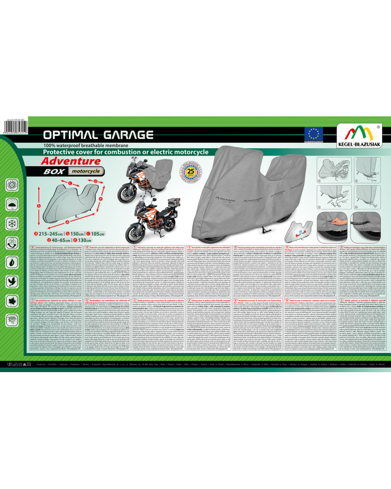 Protective cover for motorcycle L, l. 215-240 cm + box
