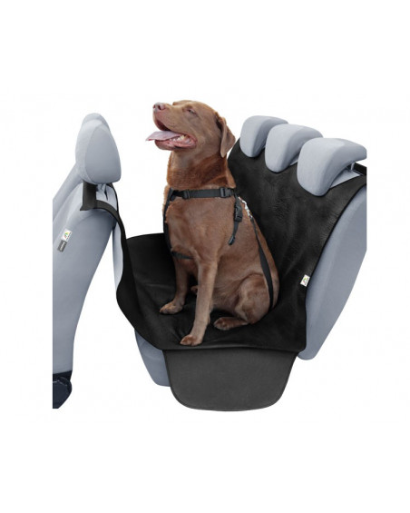 Pokrowiec posiada wewnętrzny stelaż i tworzy pewnego rodzaju hamak, co pozwala psu wyłożyć się w nim wygodnie. Zasłonięcie przestrzeni pomiędzy przednimi fotelami, utrudnia psu przejście do przodu samochodu, zwiększając bezpieczeństwo Twoje i Twojego psa podczas transportu. Pełnie bezpieczeństwa zapewnia przypięcie psa samochodową smyczą poprzez specjalny regulowany otwór w pokrowcu. Pokrowiec zapewni komfortową podróż zarówno Tobie jak i twojemu pupilowi. Nie będziesz musiał się martwić o bezpieczeństwo zwierzaka czy zarysowania i zabrudzenia środka pojazdu. Ciemna kolorystyka pokrowca, sprawi, że produkt idealnie dopasuje się do wnętrza każdego samochodu.