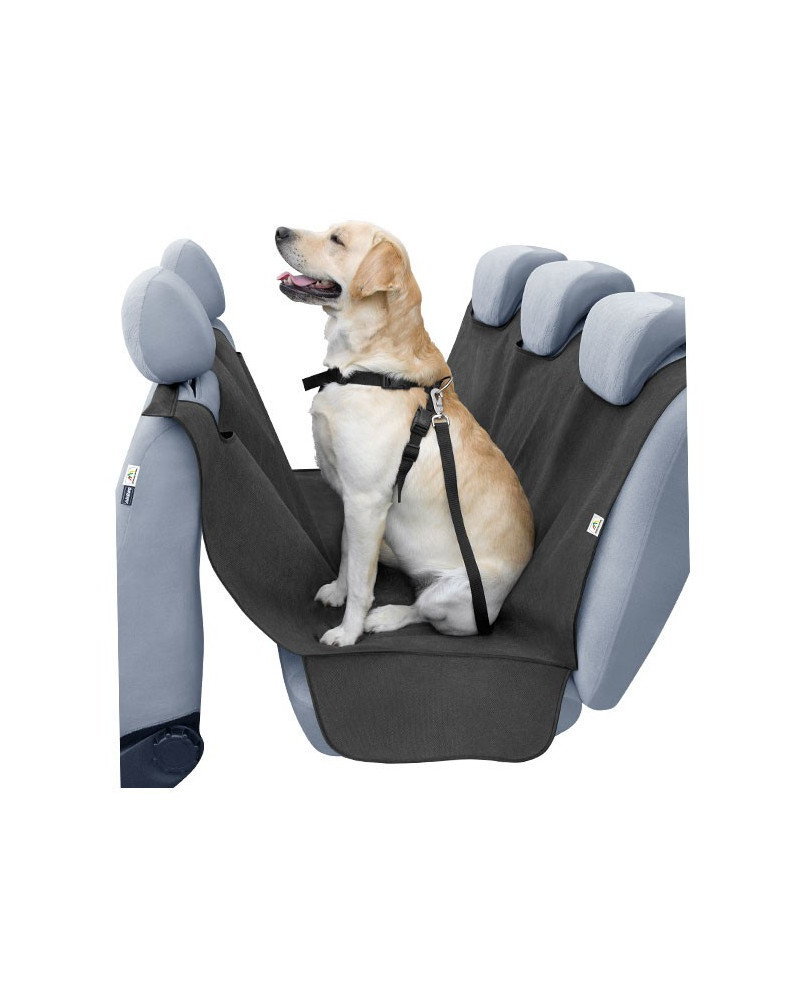 - Hard-wearing material, does not absorb odours. - Safety and comfort for your pet - Special openings for attaching your dog to the seat belt with a car leash - Comfortable to use - Protects the upholstery - Protection of the entire rear seat, including the sides